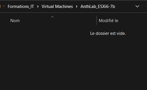 Créer un répertoire nommé AnthLab_ESXi6-7b dans le répertoire D:\Formations_IT\Virtual Machines\.